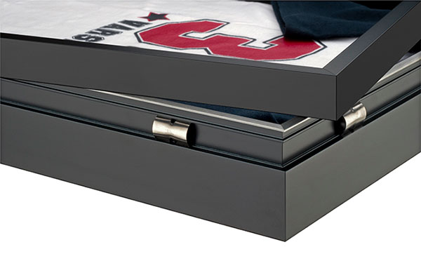 Nielsen’s front loading preassembled display case includes a garment hanging system that is so easy to use; you may find yourself changing out the jersey with the season. Place your jersey on the hanging system inside the shadow box and snap on lid. Made in the USA. Size 40 x 32 in. |